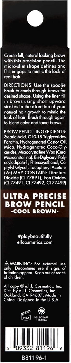 e.l.f. Ultra Precise Brow Pencil, Creamy, Micro-Slim, Precise, Defines, Creates Full, Natural-Looking Brows, Tames and Combs Brow Hair, Cool Brown, 0.002 Oz