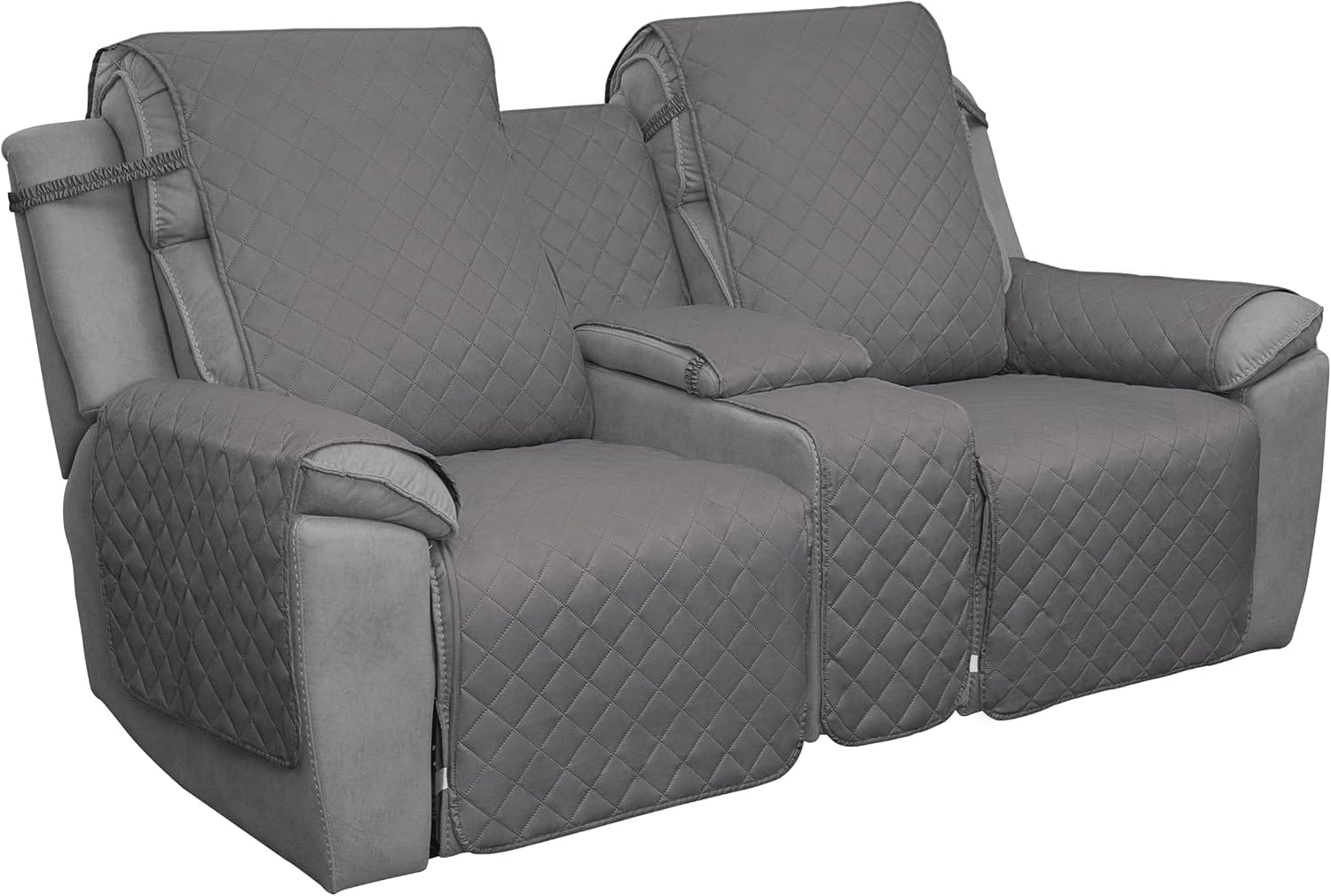 Easy-Going Loveseat Recliner Cover with Console, Reversible Couch Cover for Living Room, Split Sofa Cover for Each Seat with Elastic Straps for Kids, Dogs, Pets(2 Seater, Gray/Light Gray)