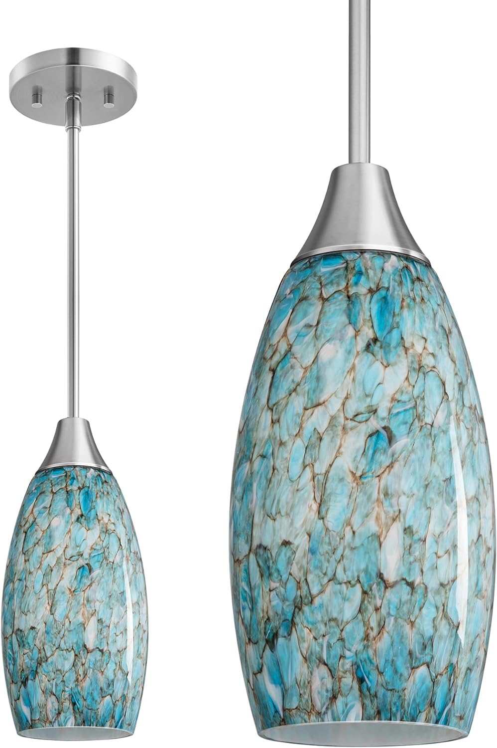 EDISHINE Pendant Light, Hand Blown Hanging Light Fixture, Adjustable Brushed Nickel Rods, Blue Glass Pendant Lighting for Kitchen Island, Sink, Bathroom, Dining Room