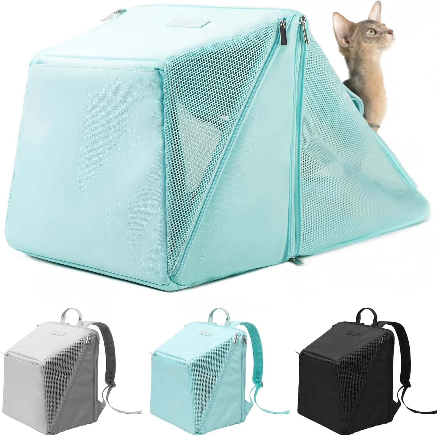 Expandable Cat Backpack Carrier Pet Soft-Sided Mesh Backpack Carrier for Cats Small Dogs Dual-Layer Ventilated Privacy Cat Backpack for Travel Outdoor Camping (Mint Green)