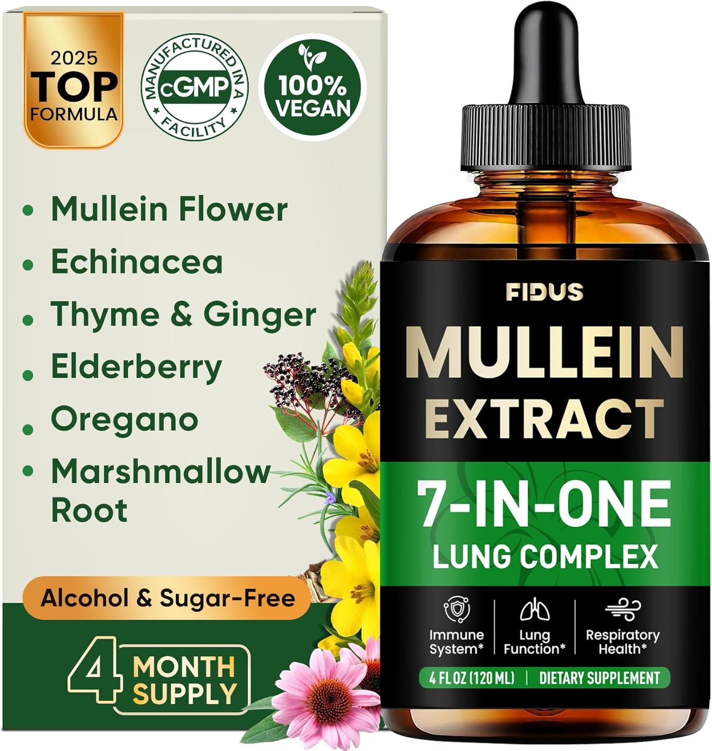 Fidus Mullein Drops for Lungs & Lymphatic Drainage 7 Herb with Echinacea, Oregano, Ginger, Elderberry, Marshmallow Root & Thyme Lung Detox for Smokers Respiratory & Immune Support, 4 fl oz