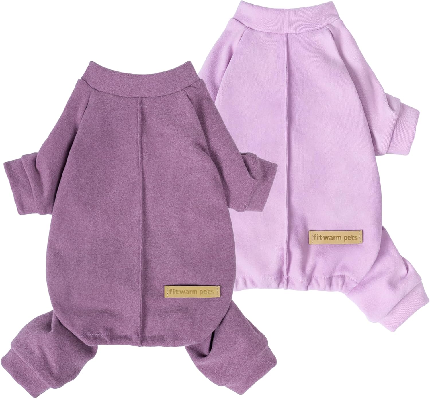 Fitwarm 2 Pack Lightweight Fleece Dog Pajamas, Warm Winter Dog Clothes for Small Dogs Boy Girl, Cozy Pet Onesie with Feet, Violet Purple, Medium