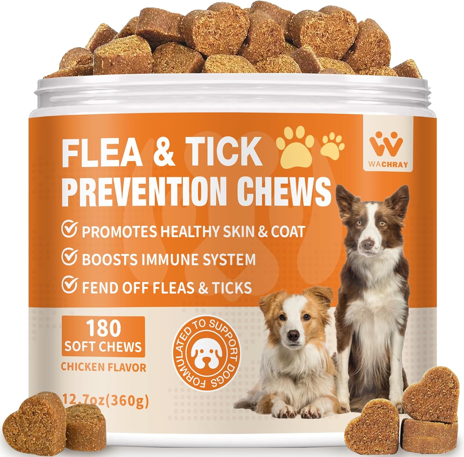 - Delicious Dog Flea Treatment Chews: WACHRAY flea and tick chewables for dogs blend efficacy with irresistible taste. Featuring the savory flavor of real chicken, they delight even the pickiest pets. Delicious flea pills for dogs easily control fleas and ticks, making them easier for dogs to tolerate.