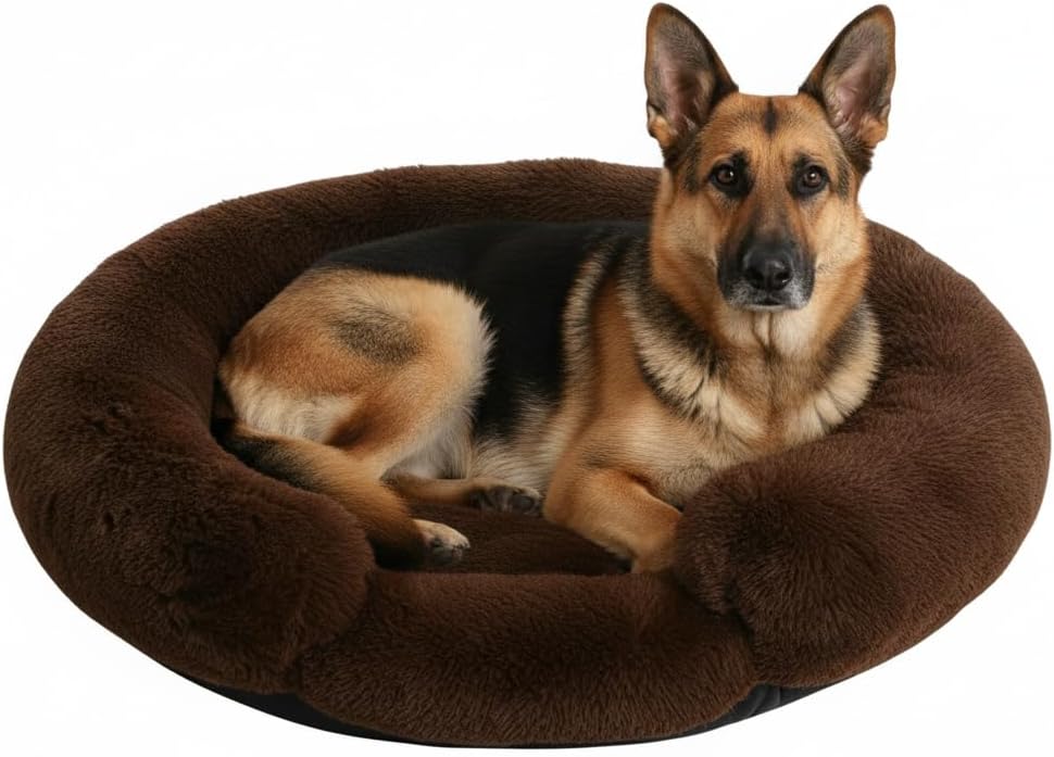 Fluffy Dog Bed Calming Donut Beds for Large Dogs Warming Round Small Medium Pet Nest Cozy Cat Mattress Indoor Washable Puppy Kennel Kittens Sleep Mat (L, 35.435.4 inch, Brown)