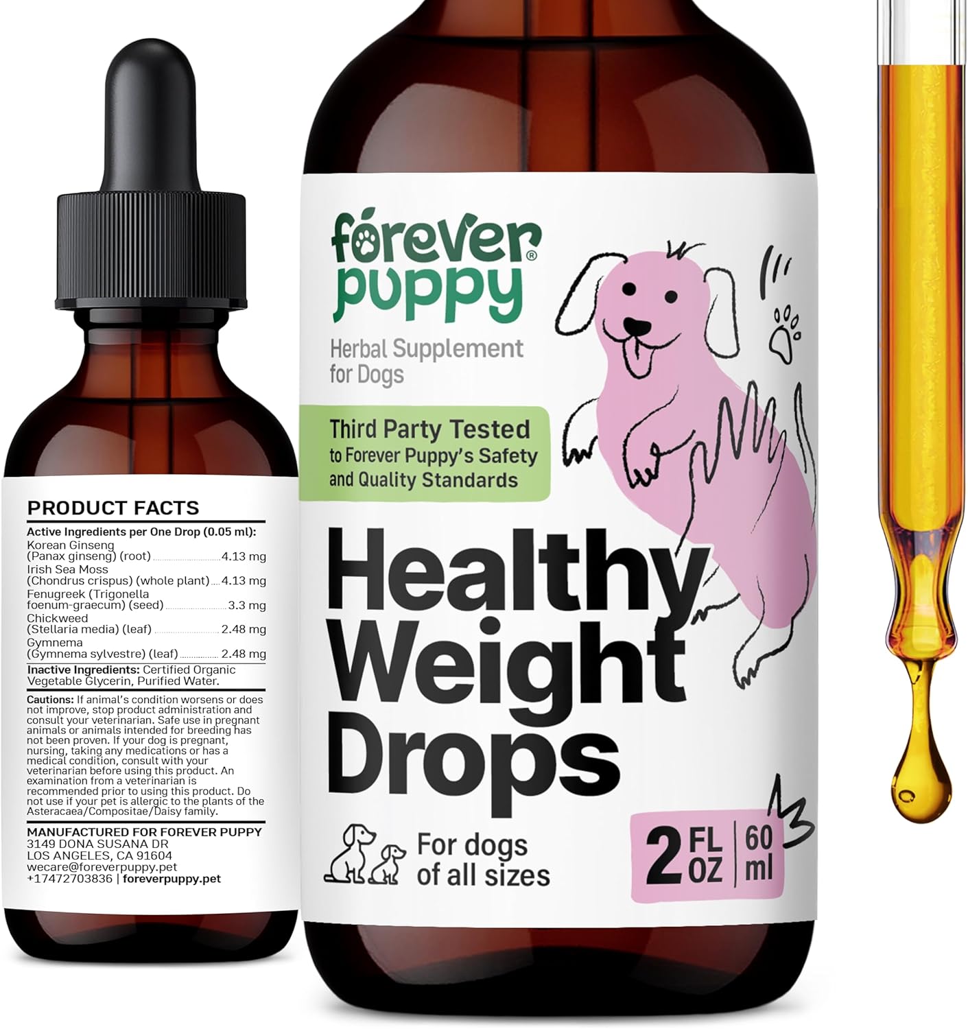 - Happy Tails, Happy Trails: Support your dog’s weight management journey. Forever Puppy’s liquid drops encourage activity and boost energy with sea moss and fenugreek seed extract.