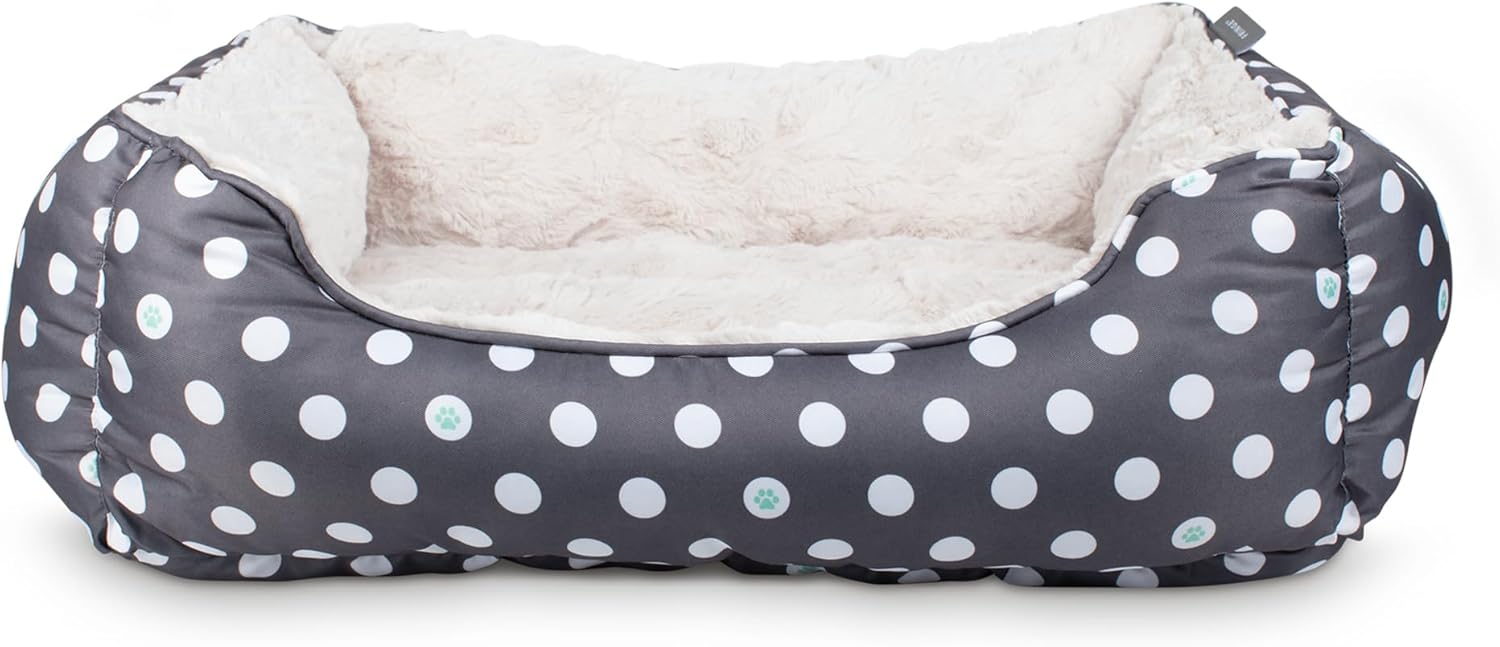 Fringe Studio “Dot Paw Charcoal Medium Rectangular Cuddler Pet Bed 25″ X 21”- Poly Filled with Faux Fur Interior – Machine Washable (213020)