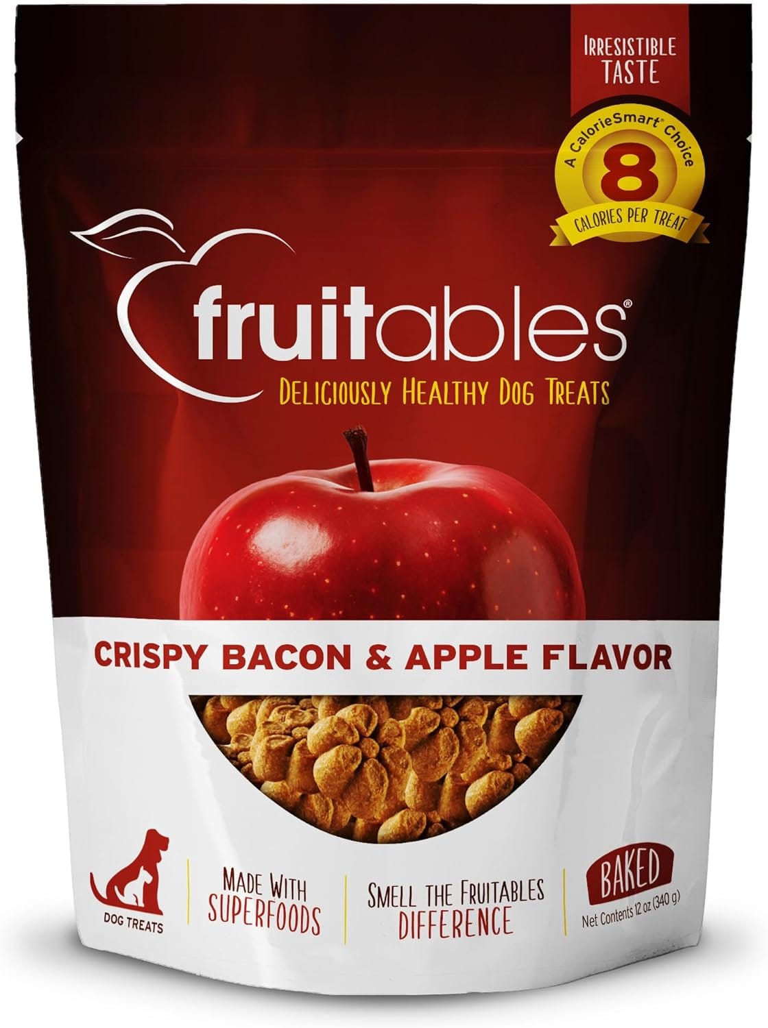 Fruitables Baked Dog Treats, Healthy Pumpkin Treat for Dogs, Low Calorie & Delicious, Free of Wheat, Corn and Soy, Made in the USA, Apple and Crispy Bacon Flavor, 12oz