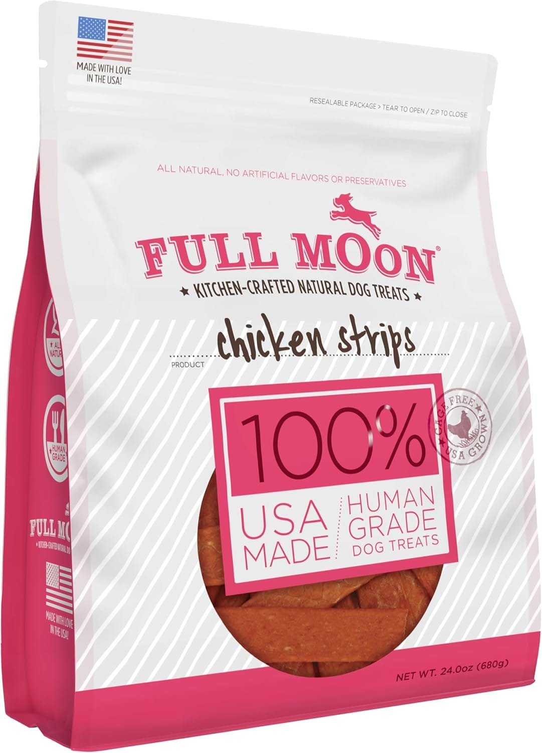 - U.S.-GROWN CHICKEN: Full Moon treats are proudly made in the United States using regionally sourced ingredients, including USDA approved, antibiotic-free chicken.