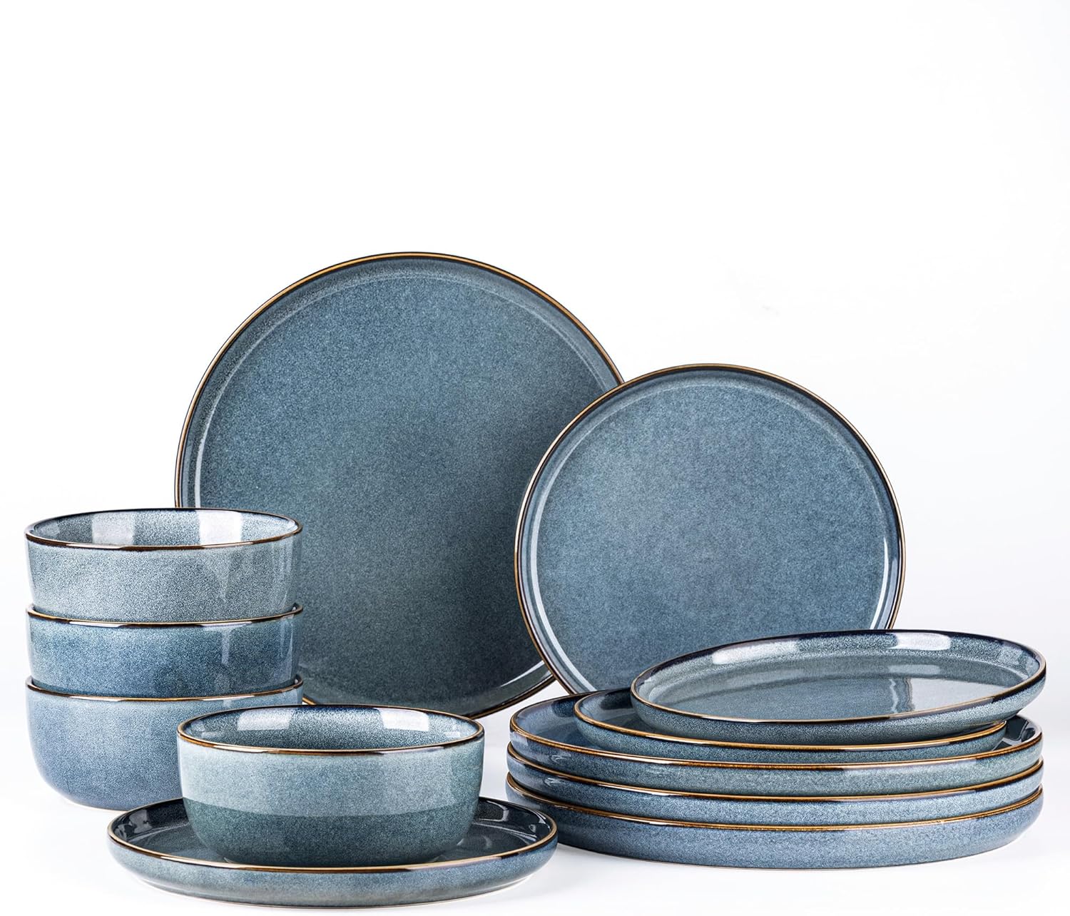 GBHOME Ceramic Dinnerware Sets for 4, 12 Pieces Stoneware Plates and Bowls Sets, Reactive Glaze Dishes -Scratch Resistant, Dishwasher&Microwave Safe, Space Blue