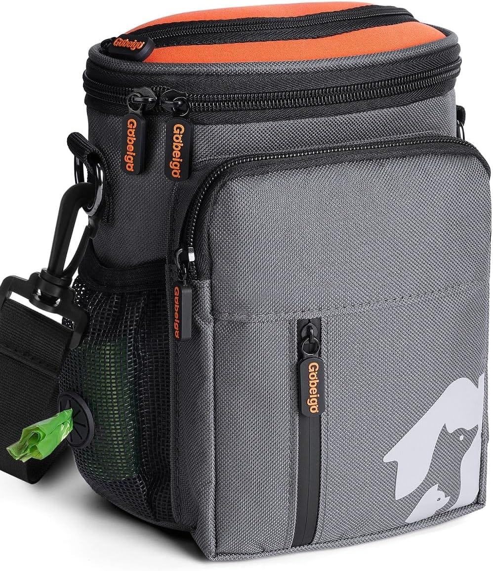 Gobeigo8 Cup Dog Treat Pouch3 Ways to Wear Treat Bag for Training & Walking, Built-in Poop Bag Dispenser, Large Phone Friendly (Gray & Orange)