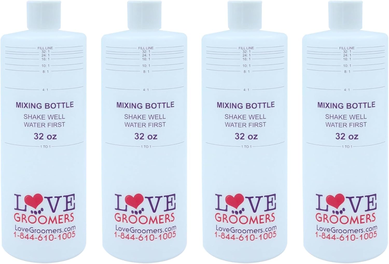 GROOMER ESSENTALS 32oz Dilution Bottles – Set of 4 – Professional Dog Grooming Mixing Bottles for Shampoo, Conditioner, and Solutions