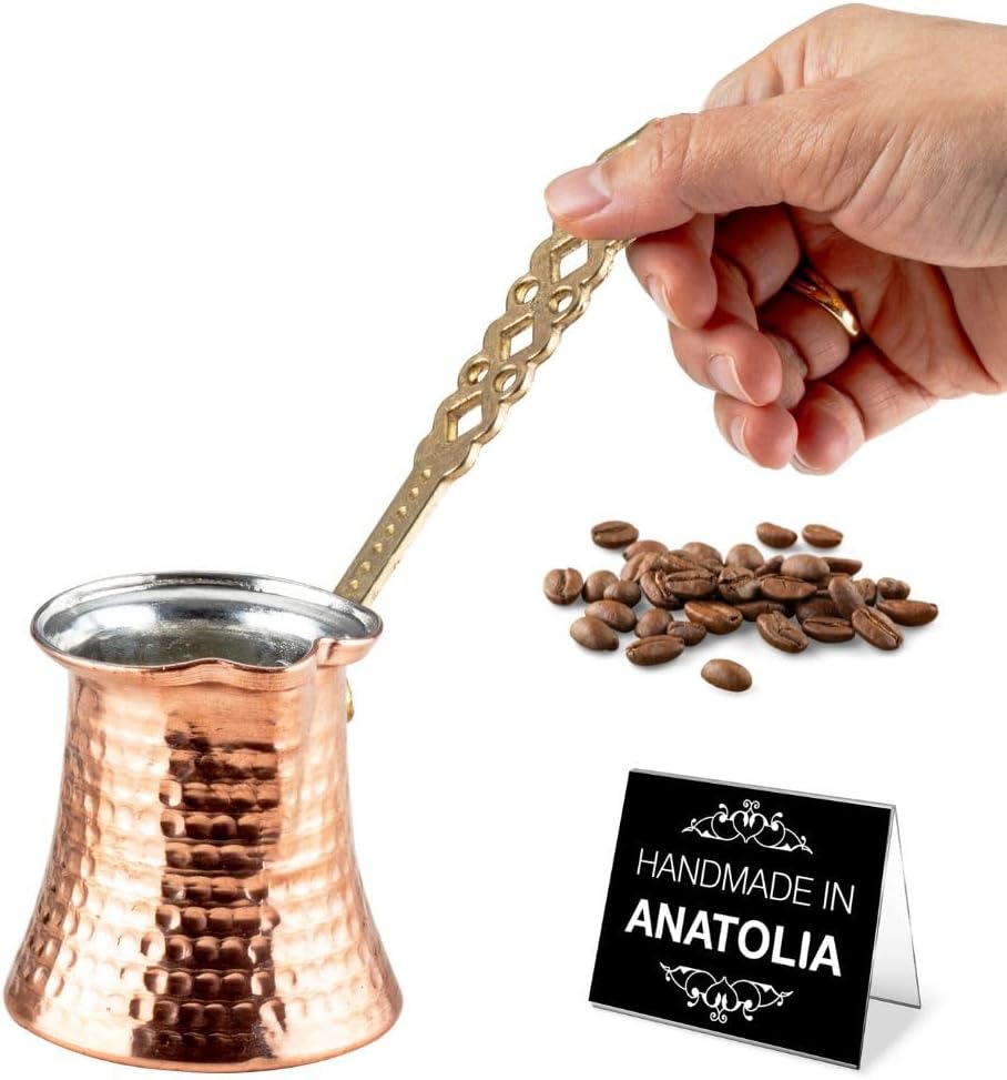 - HANDCRAFTED ELEGANCE & DECOR APPEAL: Each Hakan stove top coffee maker features a handcrafted hammered design and brass handle, offering both traditional charm and functional beauty. A stunning piece of copper kitchen decor, perfect for daily use or display.