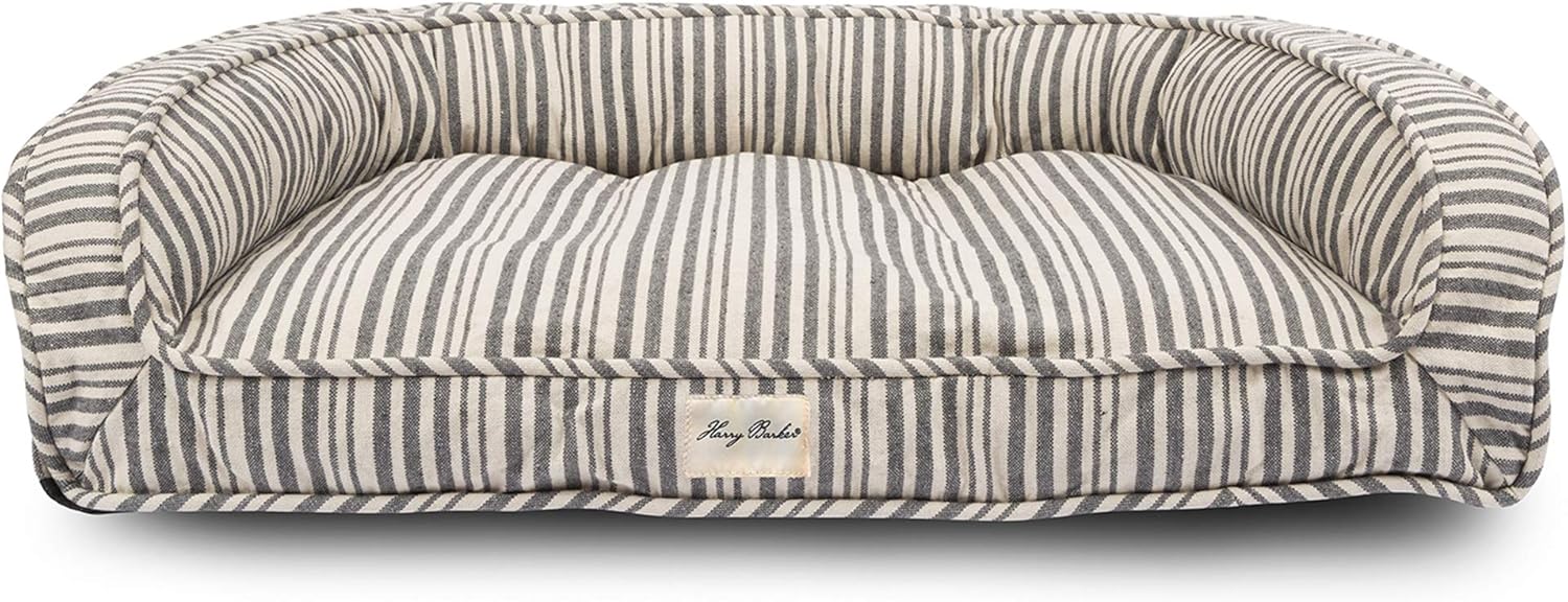 - The ultimate luxury lounger, this striped dog bed is filled with chipped memory foam and features a soft yet sturdy arched back for pups to curl up against.