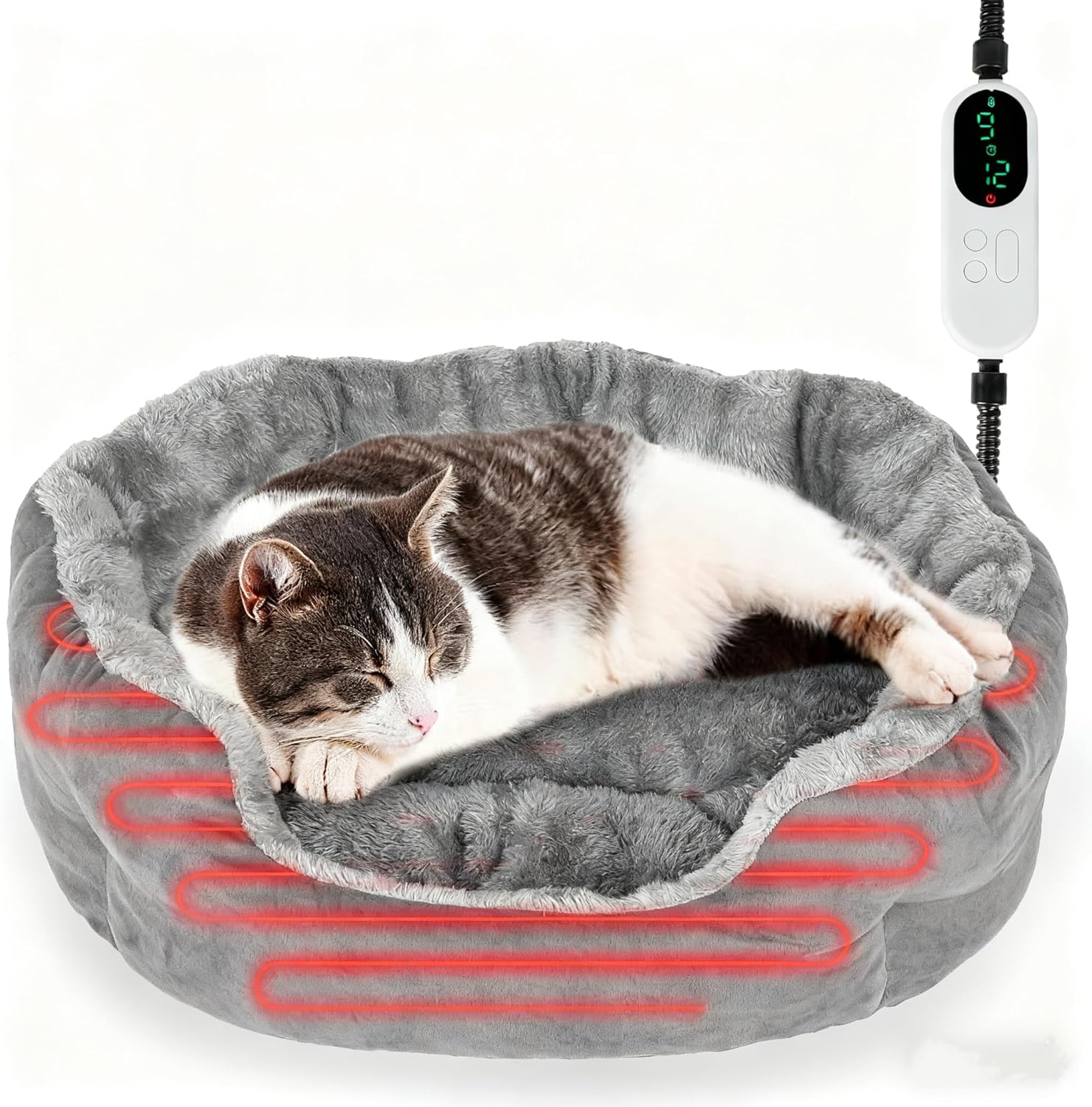 - Customize Temperature and Timer: This cat heating bed can set a 1-12-hour timer auto-off, support always-on function for your whole day needs; With 9 temperature settings ranging from 86-126℉, you can effortlessly adjust the temperature of our snuggle cat bed to suit your pet’s needs