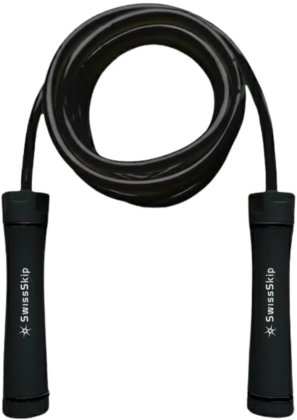 - Made of heavy duty material designed to last a long time and withstand usage on different surfaces. Theunbreakable handles with a confortable grip assure for a long life of your Swissskip rope.