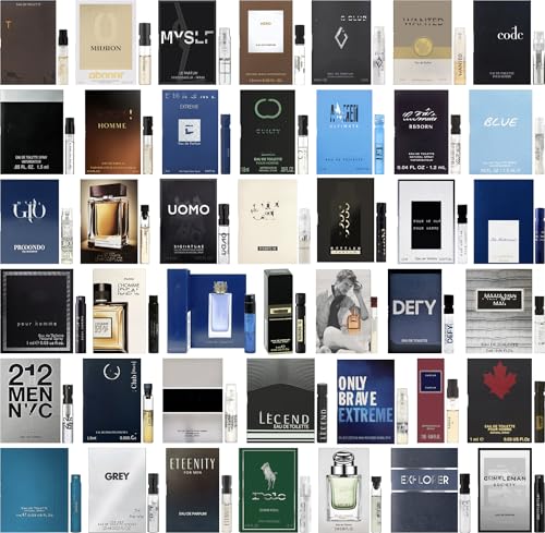 - Lot of 10 popular name brand fragrance sample vials for men. Each sample size is between 0.02 to 0.05 ounces.