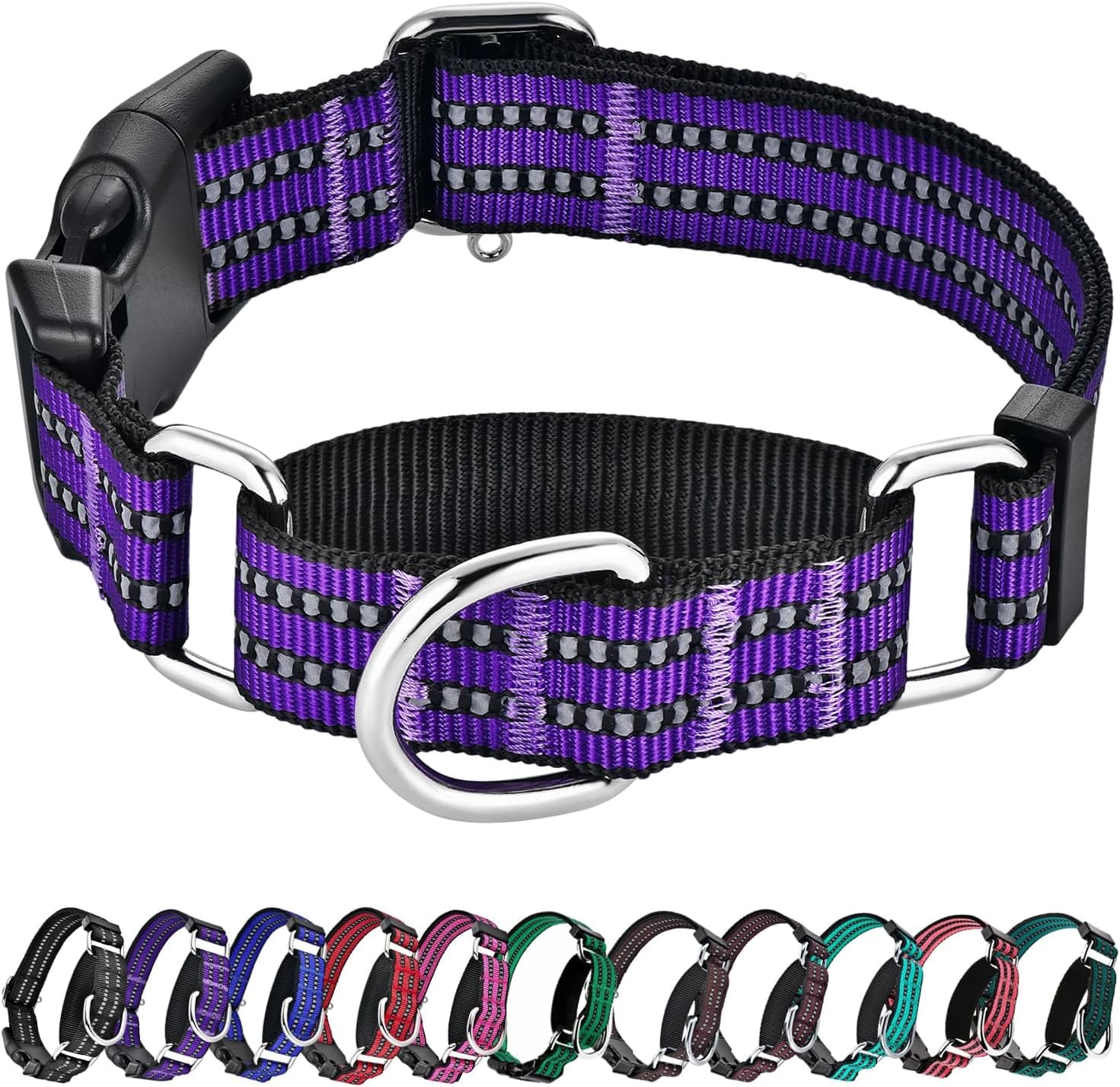 Hikiko Martingale Collar for Dogs Reflective Nylon Dog Collar with Quick Release Buckle Adjustable Training No Slip Dog Collars (Medium, Purple)
