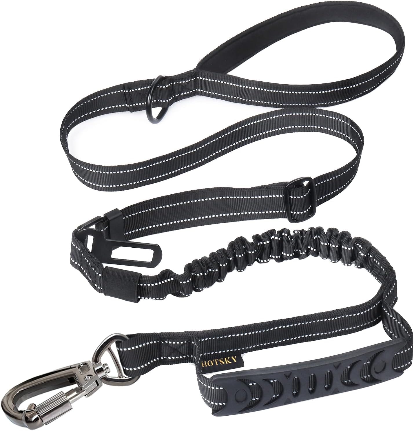 Hotsky Tactical Dog Leash Heavy Duty for Medium Large Dogs That Pull,4-6Ft Strong Bungee Shock Absorbing No Pull Dog Leash with Padded Double Handle and Car Seatbelt,Reflective Black