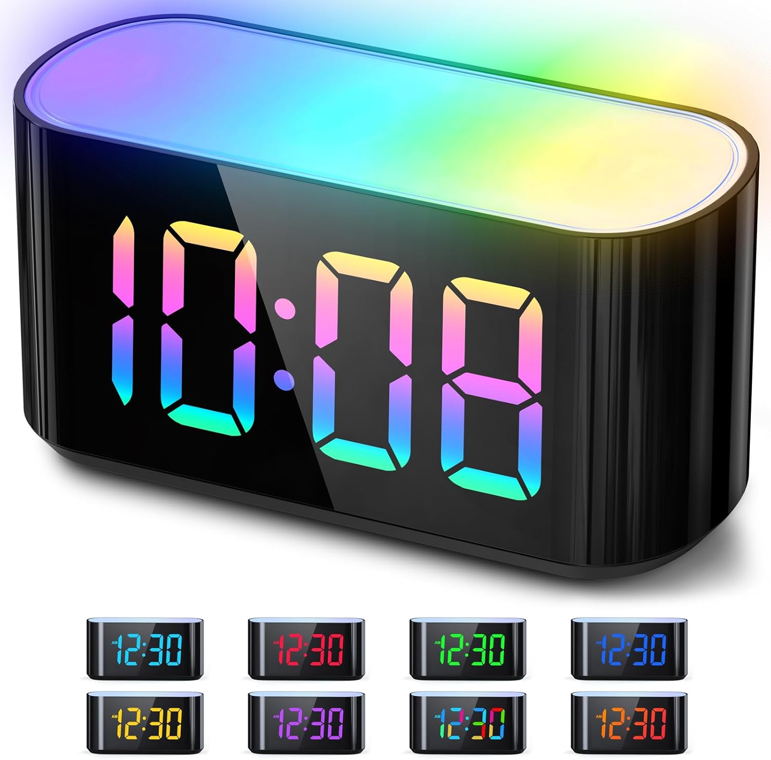 HOUSBAY Digital Alarm Clock for Bedroom, 9 Colors Dynamic Night Light, Large LED Display Number with 10 Colors Changing, Dimmer
