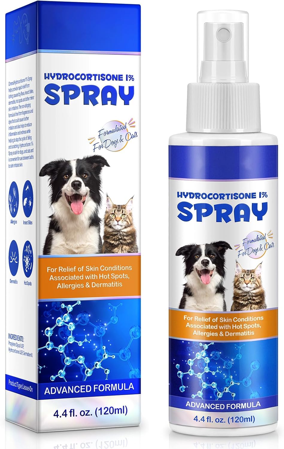 - Hydrocortisone Spray for Dogs and Cats: Our pet hydrocortisone spray is specifically formulated to provide relief for dogs and cats suffering from skin irritations, allergies, and hot spots. This versatile spray is designed to address a wide range of common pet skin issues. Give your pet the comfort they need with our fast-acting solution.