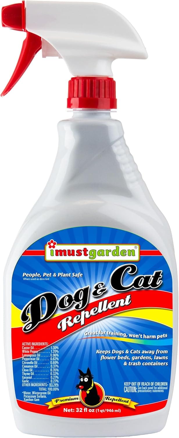 I Must Garden Dog and Cat Repellent: All Natural Spray to Stop Chewing and Repel from Yards, Plants, and Gardens 32oz Easy Spray Bottle
