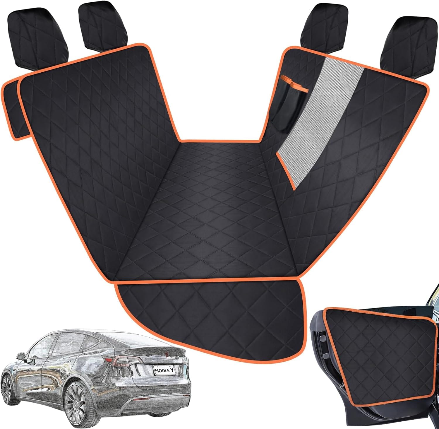 - Full Coverage Tesla Dog Seat Cover- The front and rear backrests of the car seat cover have been raised to fully protect the interior of the model Y/3. Includes bonus door panel protectors to safeguard your car’s interior from scratches, dirt, and damage caused by pets or kids