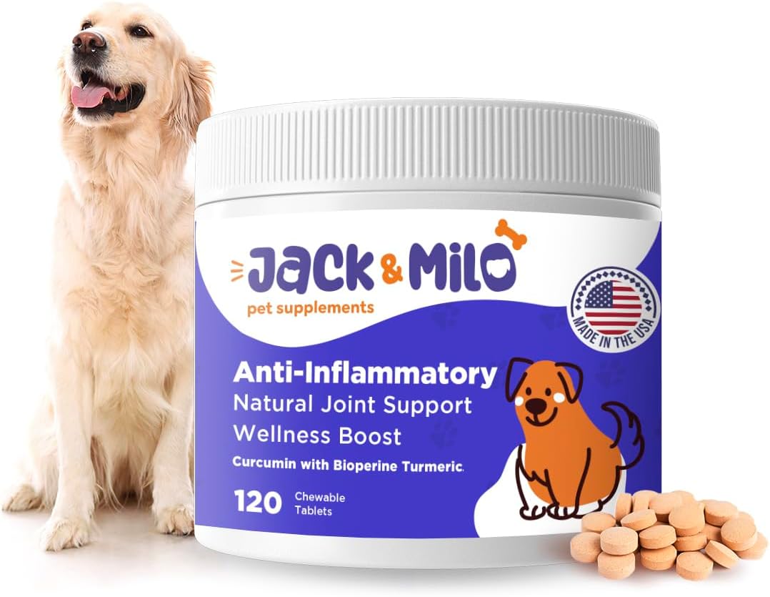 Jack & Milo Supplement Anti Inflammatory for Dogs with Turmeric, Hip, and Joint – Dog Arthritis Pain Relief, Support for Mobility & Wellness, USA Made-GMP Certified, Non-GMO, 120 Tablets
