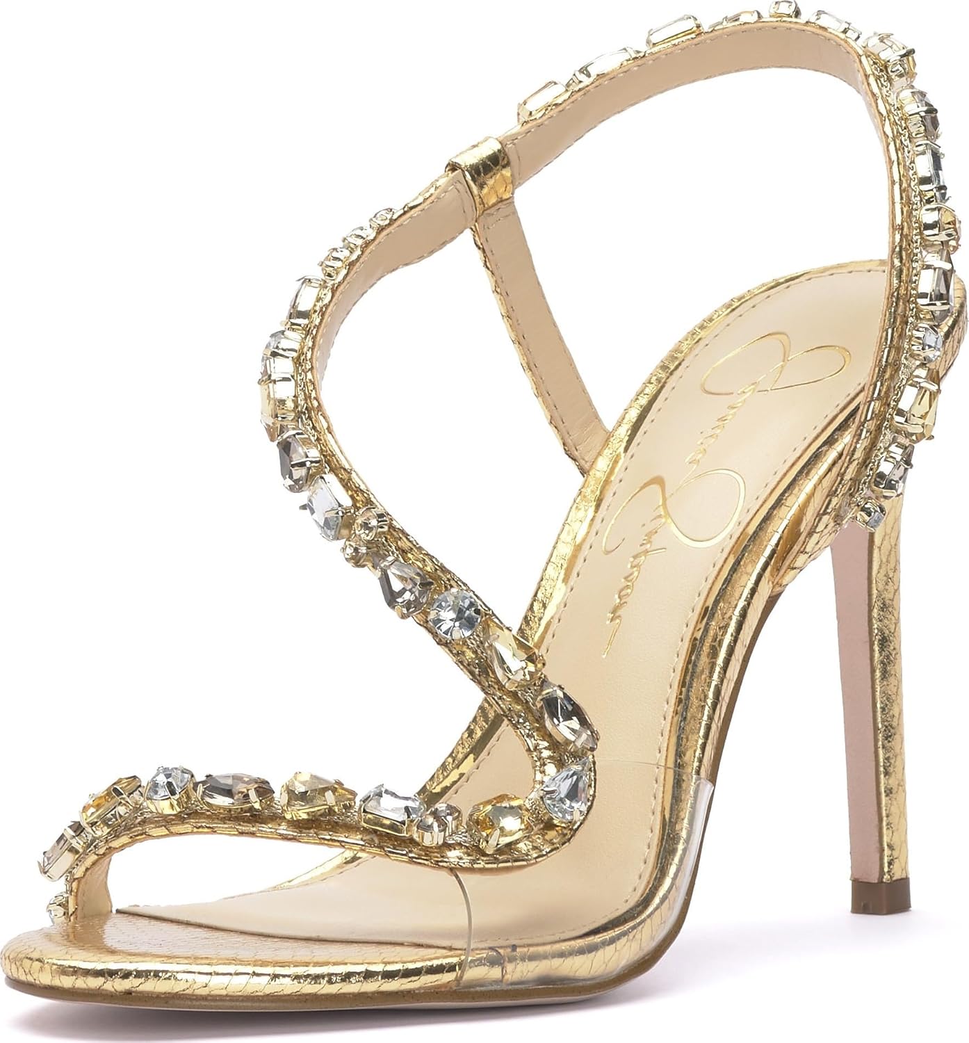 - GLAMORIZE YOUR LOOK: The Jessica Simpson Jaycin High Heel Sandal features a stylish embellished design with dual tone rhinestones adding eye-catching shine