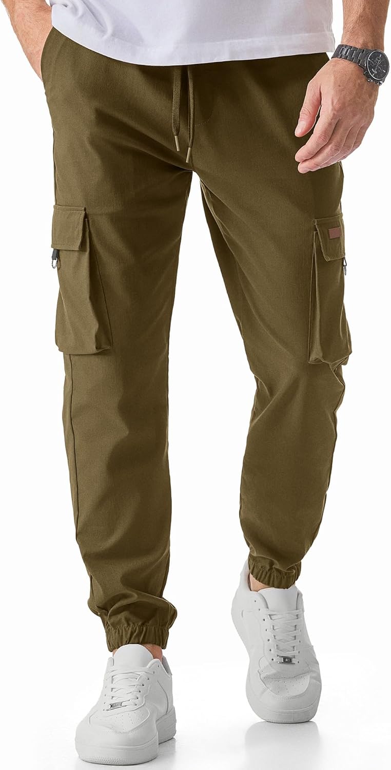 JMIERR Mens Cargo Pants Casual Lightweight Elastic Waist Drawstring Tapered Pant with Pockets