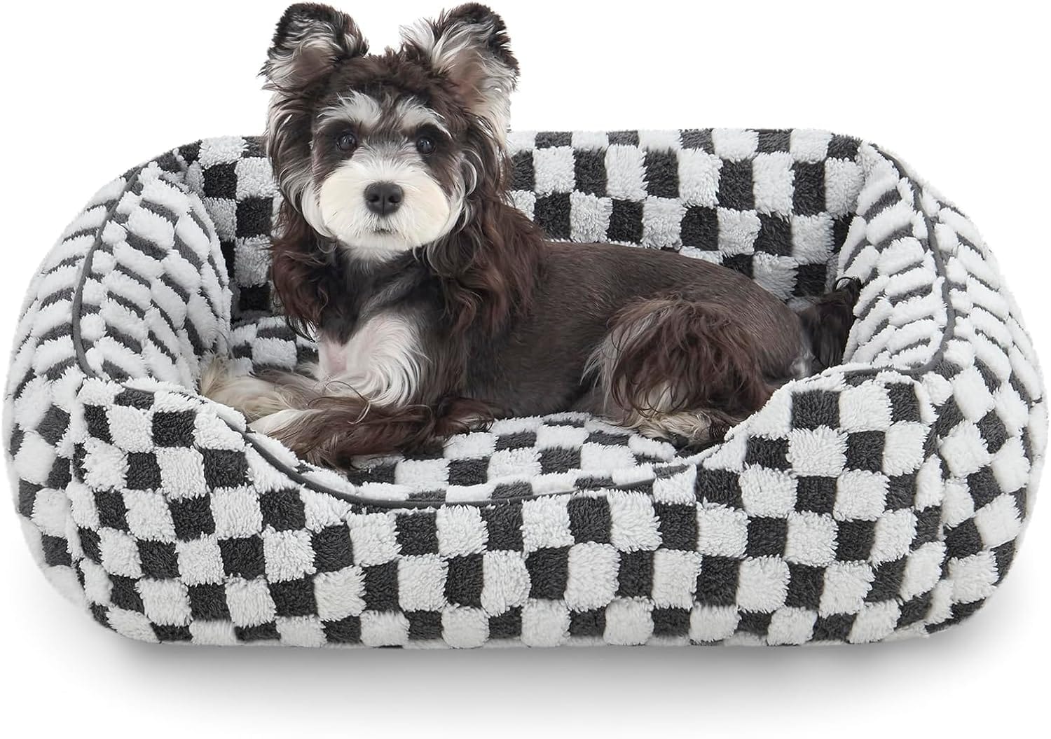 - 🐶Stylish and Cozy Design: Made with super soft Jacquard short plush material, this dog bed is warm and comfortable. Unique colors and Checkboard patterns add a dash of style to your decor, creating a cozy and charming space. Your pet will love snuggling up in this cozy and cute bed, ideal for all seasons