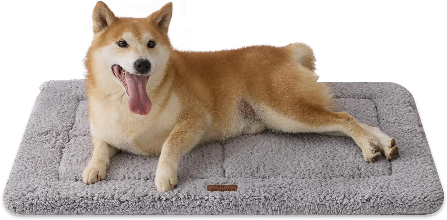 Joydeco Low Profile Dog Crate Mat Reversible Bed Pad, Washable Dog Pad Mat with Ultra Soft Fleece, Compact Design Kennel Beds Mats for Large Medium Small Pets, 35″ x 23″ Gray