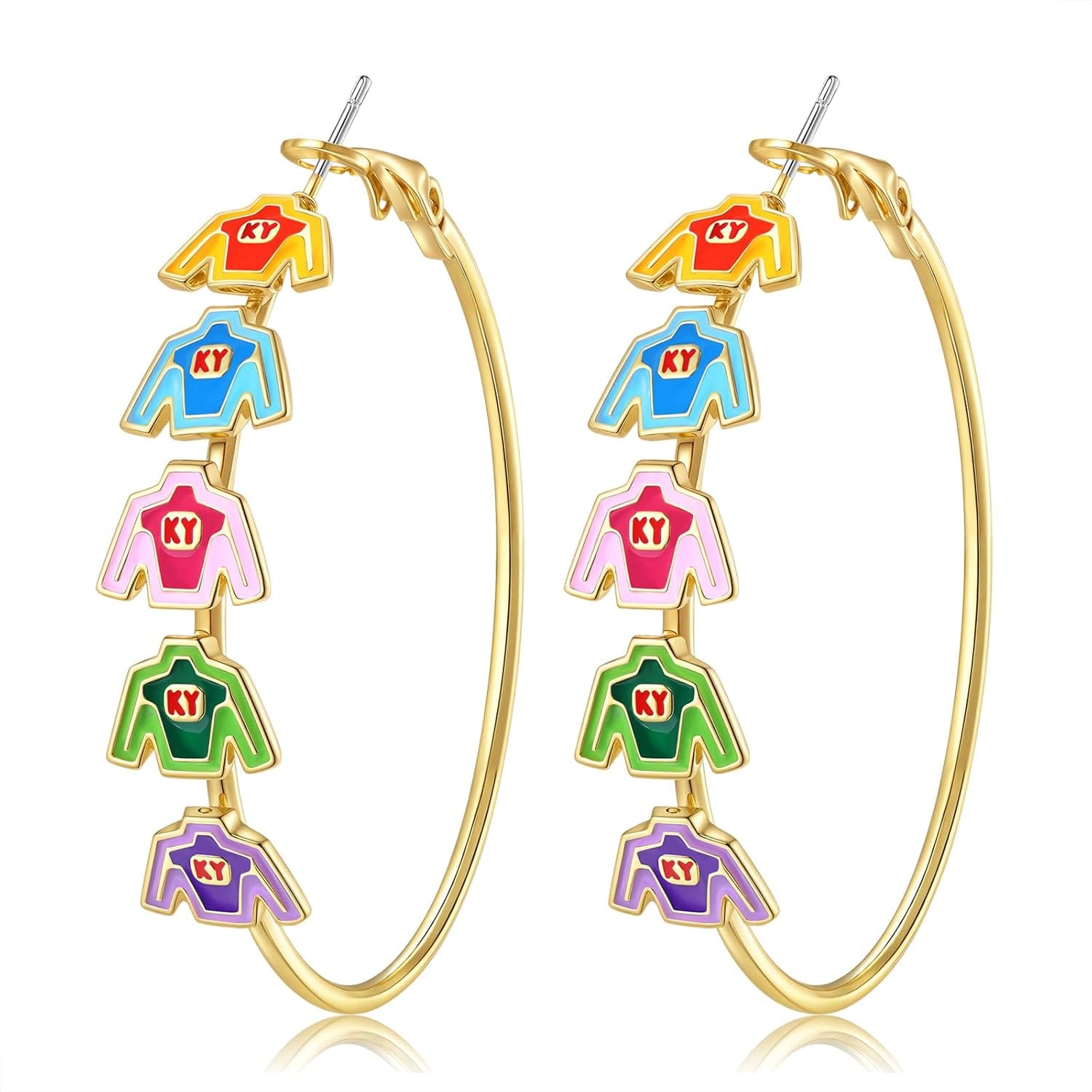 - ♥ Kentucky Derby Hoop Earrings — Gallop into Derby Day glamour with these intricately Kentucky Derby Earrings! Featuring a playful blend of horse, horseshoe and riding suit charms embedded in sleek gold hoops, our horse earrings embody the spirit of equestrian glamour. Perfect for Churchill Downs outings, backyard derby parties or horse race day outfits, these derby hoop earrings will make you the style winner before the first race ends