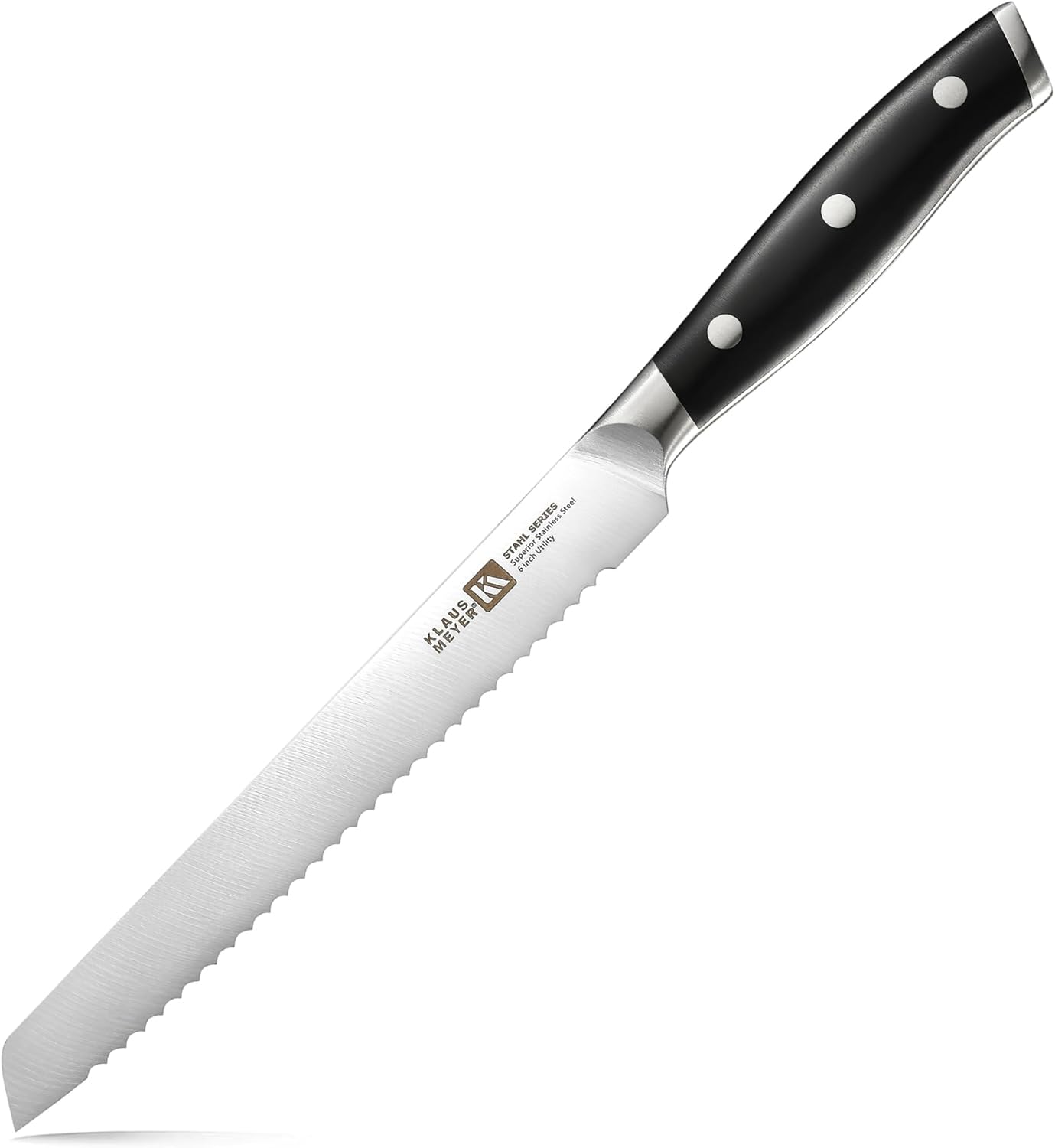 Klaus Meyer Stahl High Carbon Exclusive German Steel 6 inch Utility Serrated Knife (Black)