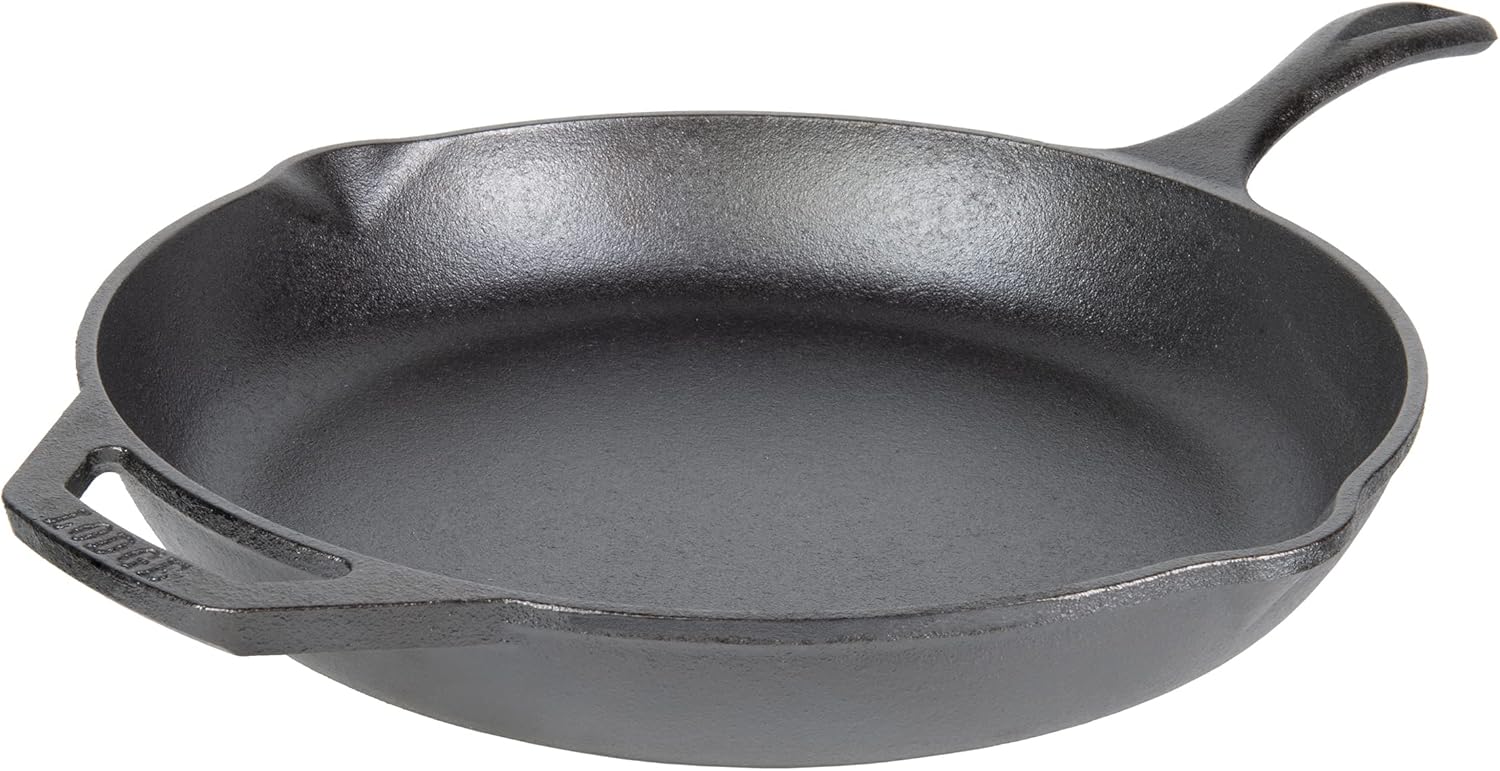 - Thoughtfully Designed Cast-Iron Skillet: This 12-inch iron skillet showcases ergonomic handles, spatula-friendly sidewalls, and generous pour spouts