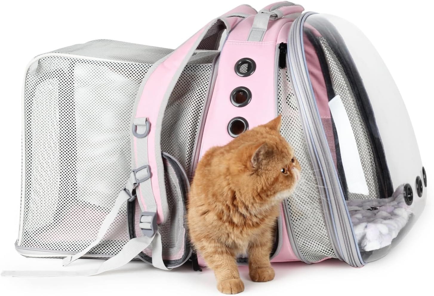 Lollimeow Cat Carrier Backpack, Bubble Dual Expandable Backpack Carrier, Pets and Small Dogs,Airline-Approved, Designed for Travel, Hiking, Walking & Outdoor Use (Dual Expandable-Pink)