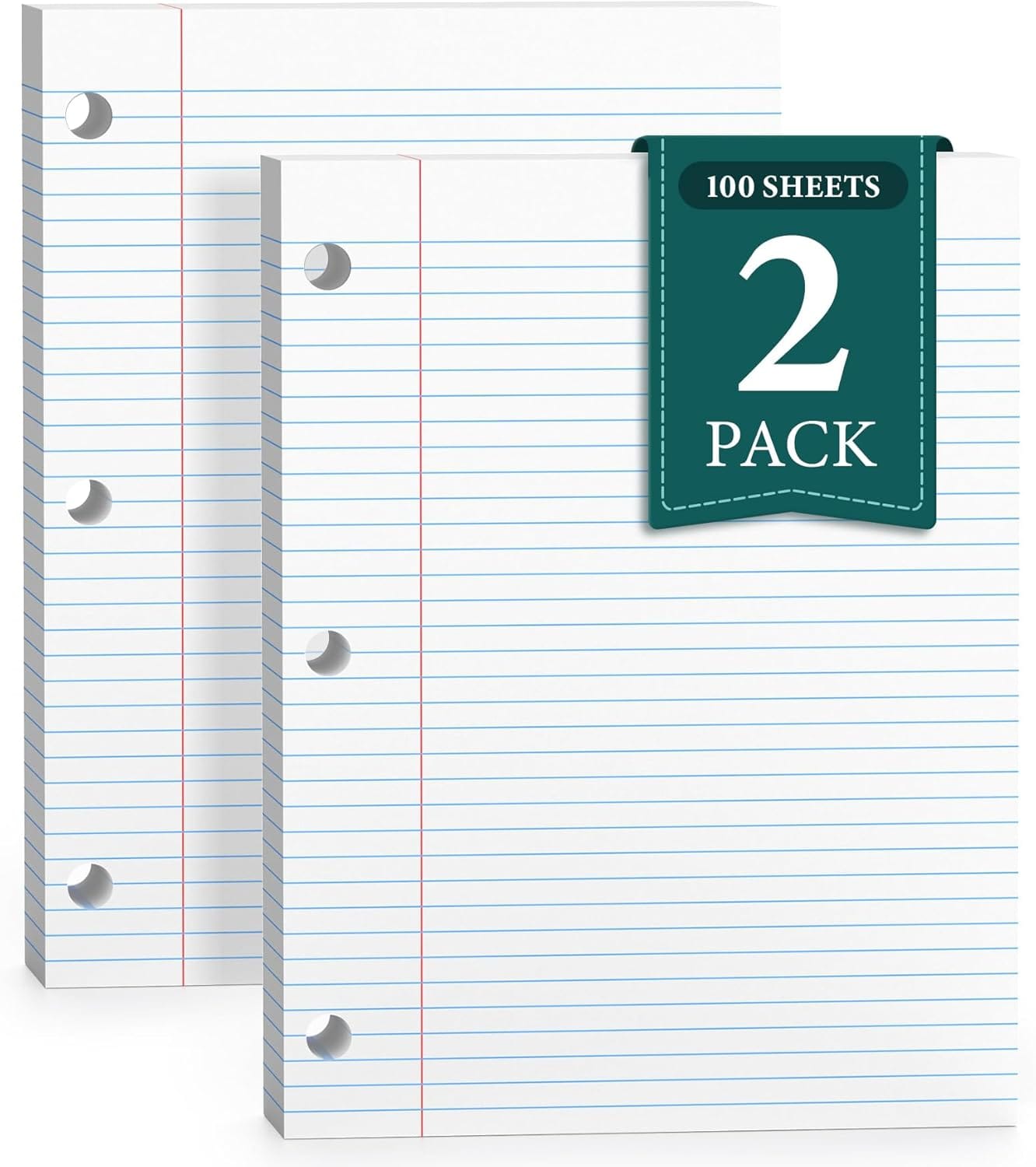 Loose Leaf Paper, Notebook Paper, 8 x 10.5 College Ruled Paper, 3 Hole Punch Binder Paper, Lined Paper for 3 Ring Binders, College Ruled Paper, 100 Sheets/Pack Filler Paper (2 Pack)