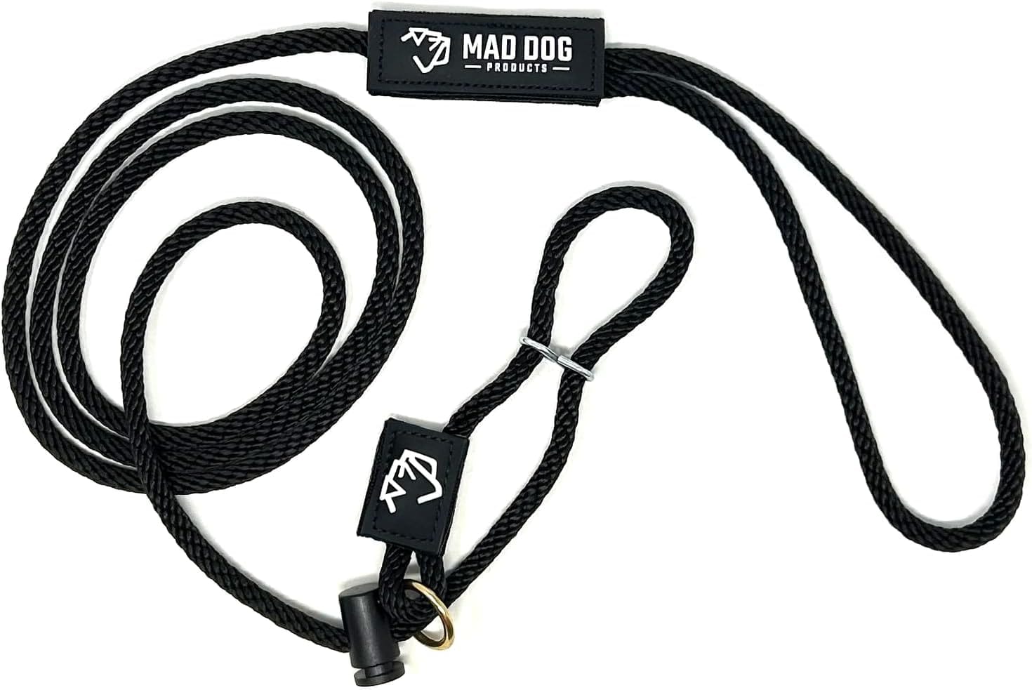 Mad Dog Products Easy Leader Dog Leash 1/4″ x 8′ Black Signature Rope- Made in USA