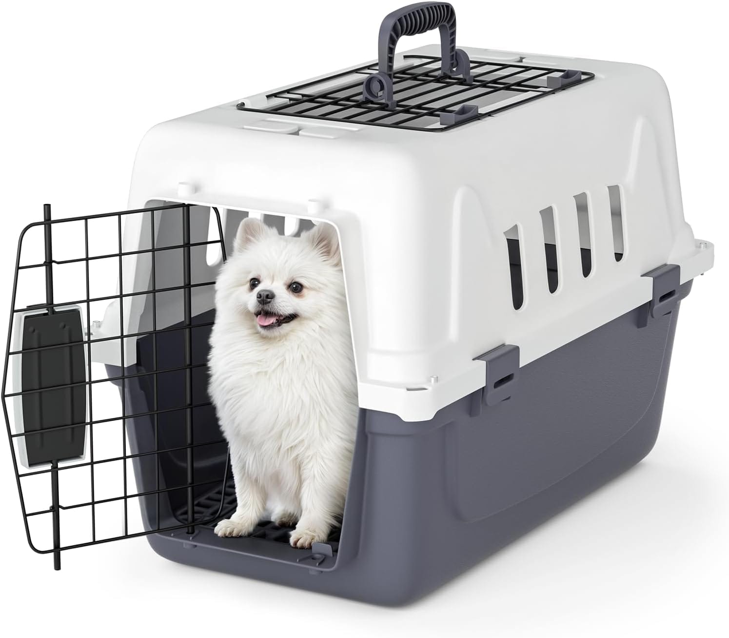 Magshion 18 Inch Pet Carrier for Small Dogs and Cats with Top and Front Door Access, Plastic Dog Kennel for Longer Traveling, Durable Handle, and 4 Sides Ventilation for Pet Up 10 lbs (White+Grey)