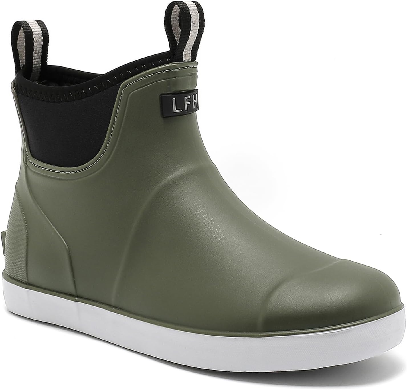 Mens Deck Boots, Saltwater Fishing Booties Rubber Waterproof Ankle Rain Boots, High-performance Footwear Chelsea Boots for Gardening Fishing Boating Camping Sailing