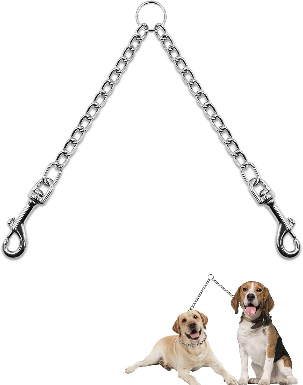Metal Double Dog Leash Chew Proof Chain Leash 2 Way No Tangle Coupler Anti Chew Dog Leash Extension Splitter Lead for 2 Small Dogs Walking (40cm)