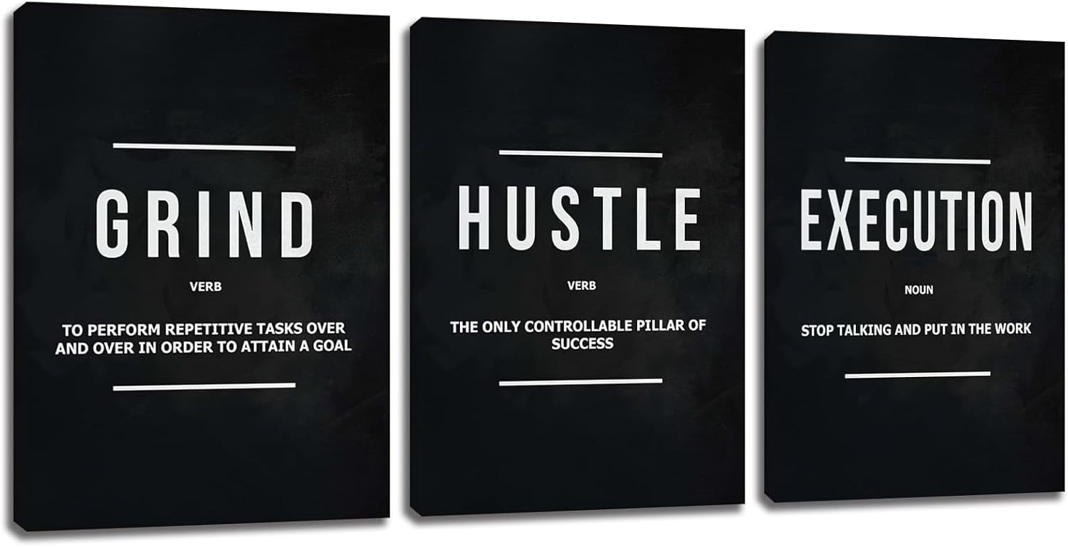 Motivational Office Wall Decor Inspirational Success Canvas Wall Art Hustle Posters Prints Entrepreneur Quote Wall Picture Paintings 3 Pieces Artwork Home Bedroom Framed Easy to Hang(36Wx16H)