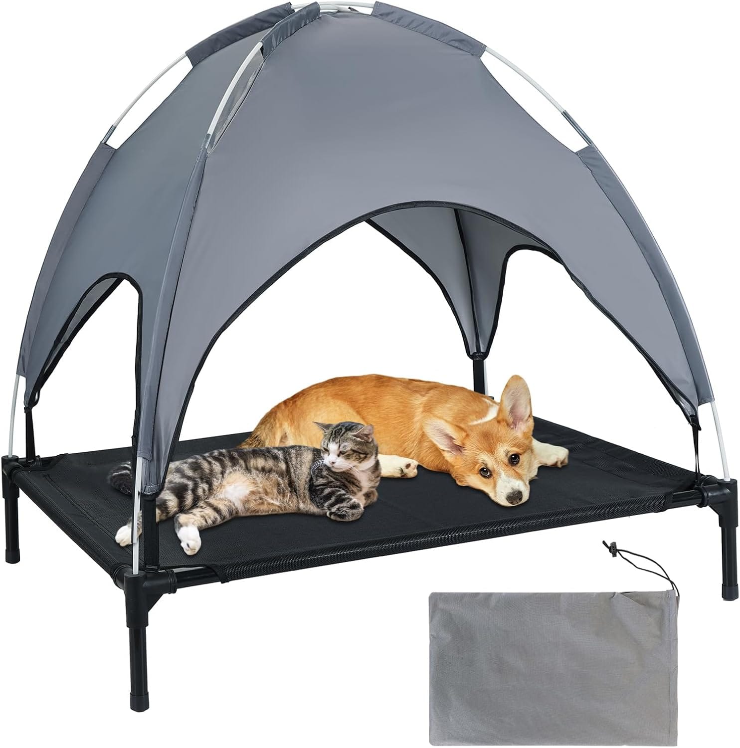 - Lightweight & Portable Setup: Set up this pet bed in just minutes—no tools required! The foldable frame and included storage bag make it easy to transport and store, whether you’re at home, in the park, or heading out on your next camping adventure.