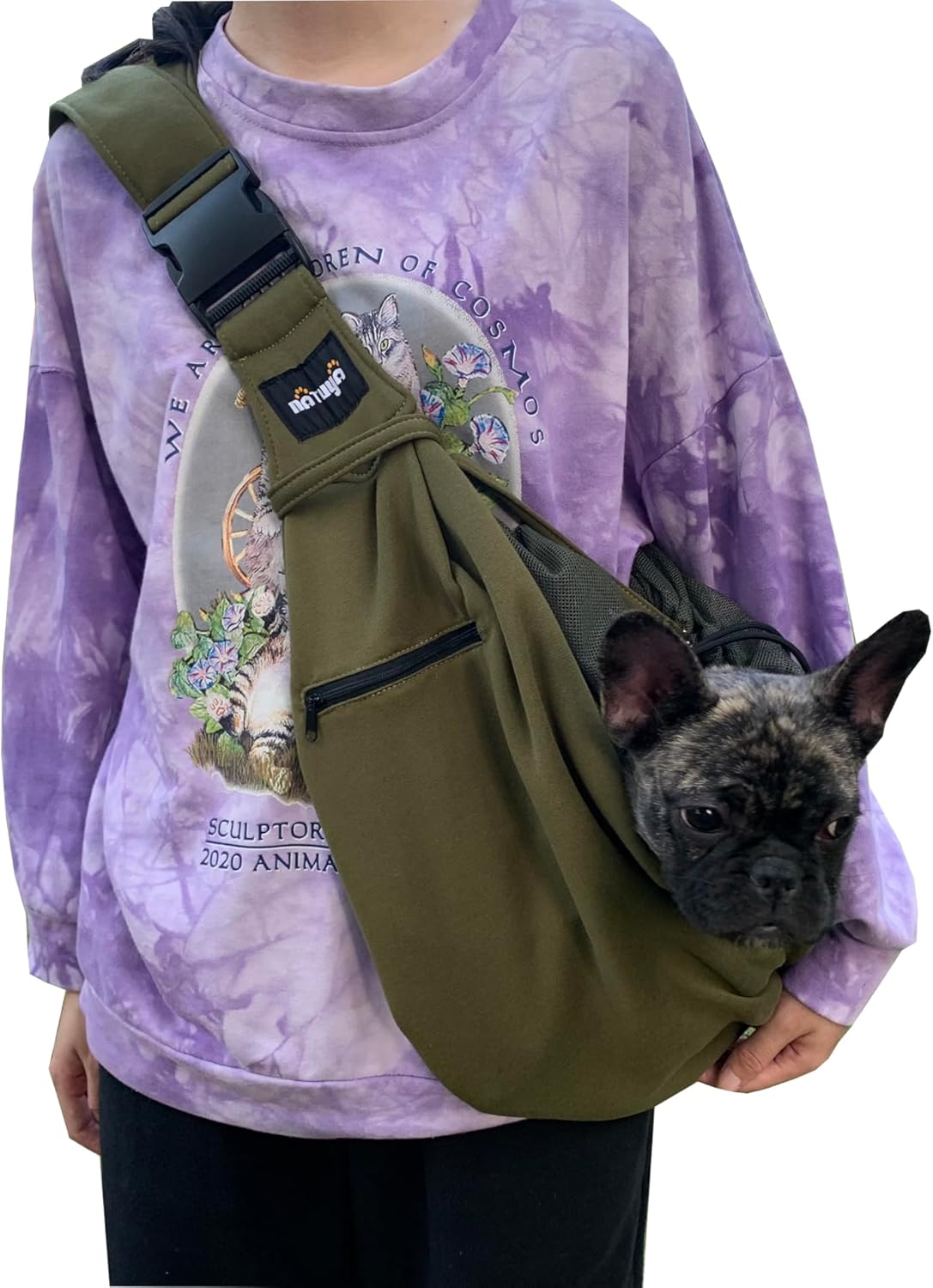 - [Companion]This dog carrier front pack is an ideal solution to keep your pet company in many situations, like bringing your puppy on your errands, taking it to your party, or simply taking a walk after dinner. NATUYA pet sling allows you hand free while you are walking and provides your pet snug and cozy place right next to your body. Enjoy the mama kangaroo moment, both you and your fur kid.