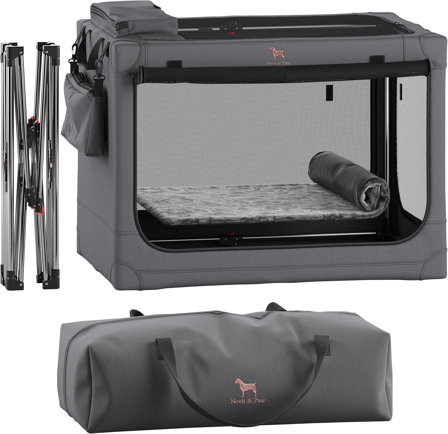 Noah & Paw Collapsible Dog Crate 30 Inches, Large Dog Crate for Large Medium Breeds, Travel Kennel for Car, Including Pet Mat for Pet Cage, 2 Storage Pockets, Handbag, 10mm Locking Zipper 30*21*21
