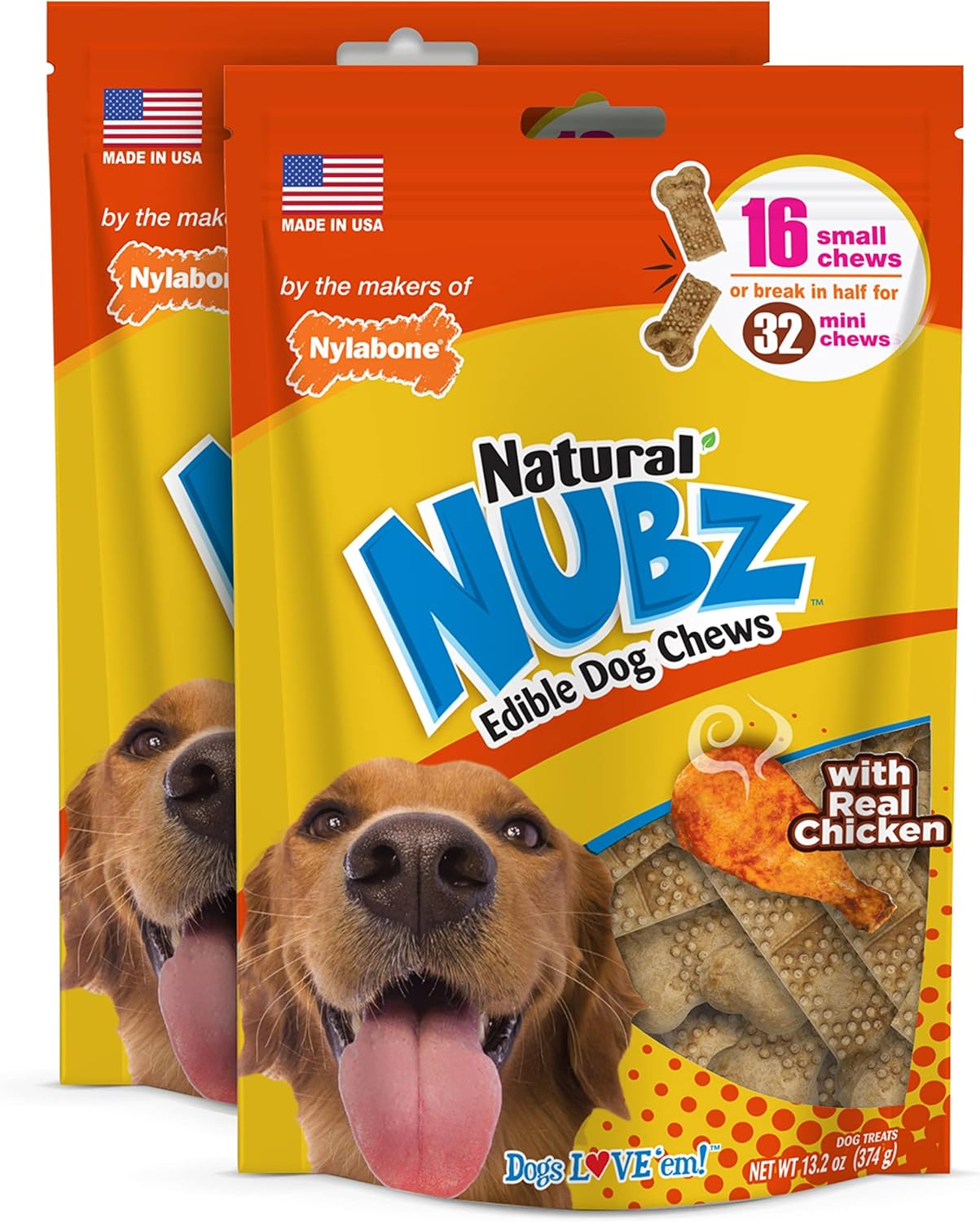 Nylabone Nubz Natural Dog Chew Treats, Chicken Flavor Pet Dental Chews for Small Dogs, Longer-Lasting Dog Bones Made in USA – Up to 30 lbs. (32 Count)