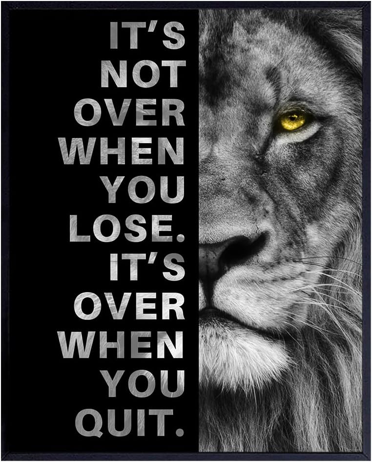 Office Wall Art For Men 11×14 – Inspirational Wall Decor – Motivational quote – positive affirmation Wall Art – Gym Motivation Poster – Man cave Wall Decorations – Lion Print – LARGE Unframed