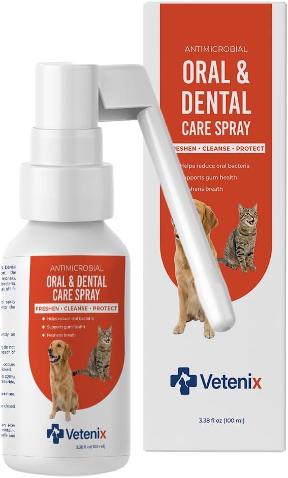 - SAFE FOR DAILY USE : Vetenix Oral & Dental Care Spray is lick-safe, rinse-free, and gentle enough for puppies, kittens, seniors, and sensitive pets when used as directed. Made without alcohol, dyes, fragrances, or artificial flavors, it supports daily oral hygiene and fresher breath—no rinsing, no foaming, no stress.