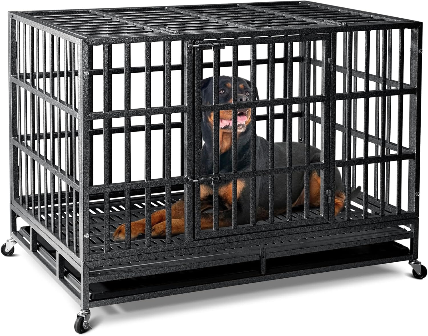 - Effortless Assembly & Quick-Clean Design:Most of the dog crate parts were pre-assembled, you just need to fit it with four wheels and six (it used to be ten) screw bolts, only takes within 5 minutes to complete. The two removable bottom pallets (a washable high grade plastic pallet and a upgrade metal pallet), make clean up more conveniently.Dog parenting can be challenging, but this crate turns those struggles into stress-free moments – your ultimate partner in creating paw-friendly routines.