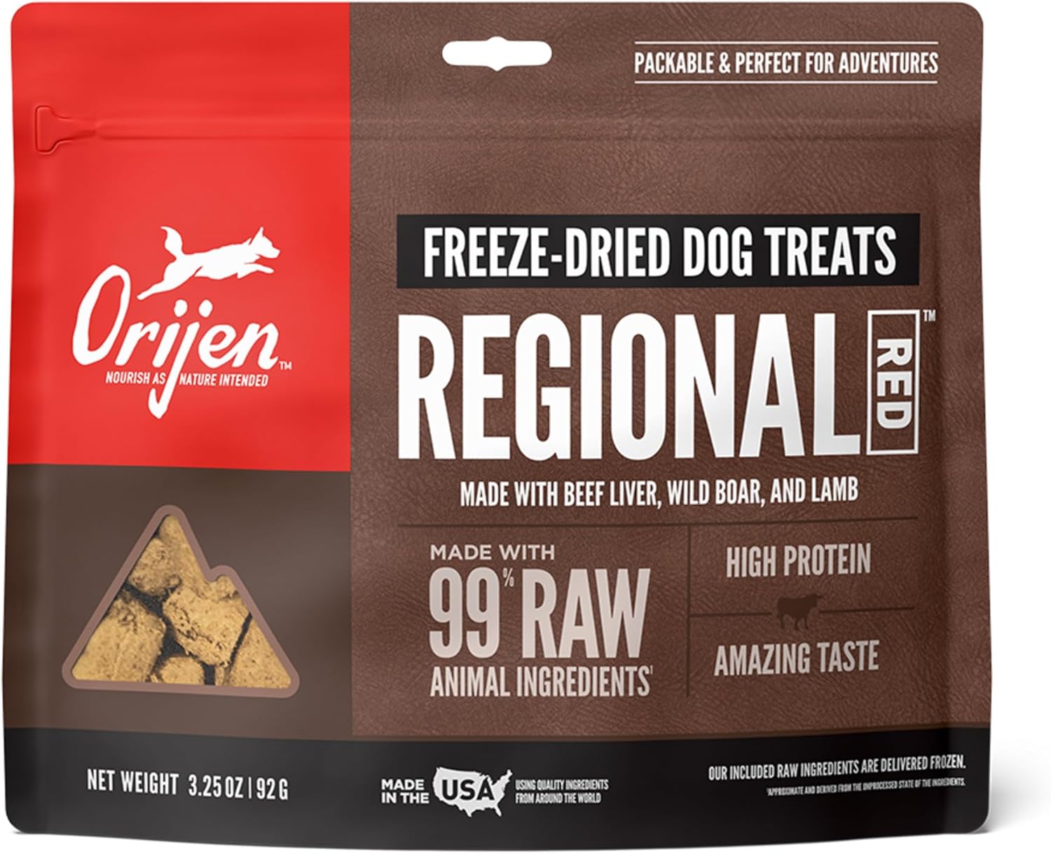 ORIJEN Grain Free High Protein Freeze Dried Dog Treats Regional Red Recipe 3.25oz Bag