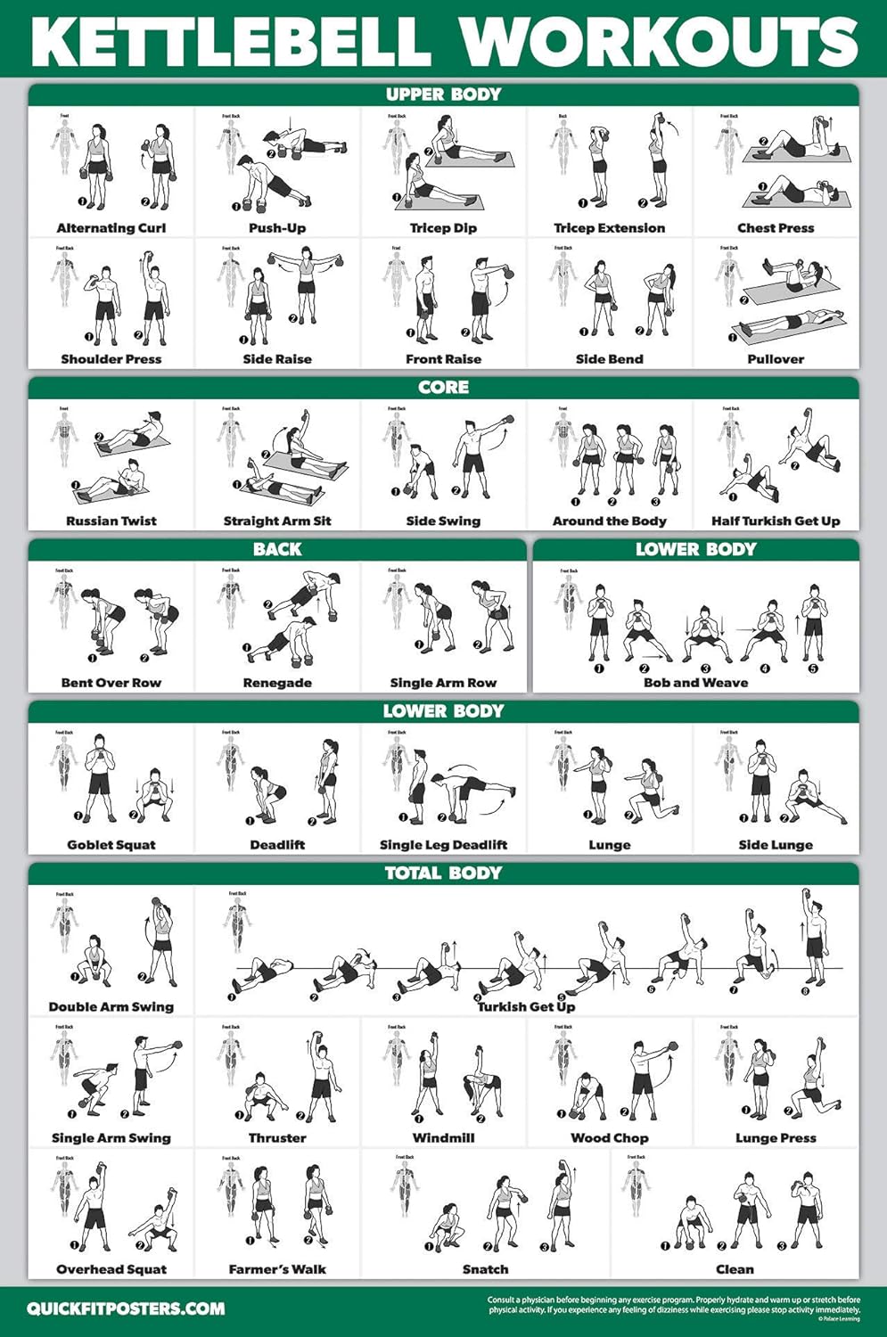 Palace Learning QUICKFIT Kettlebell Workout Exercise Poster | Illustrated Guide | Kettle Bell Routine (Laminated, 18″ x 24″)